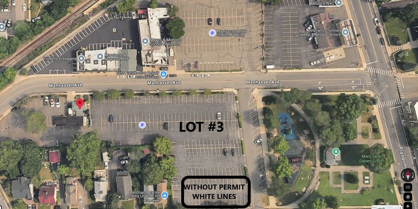 Commuter parking for the Long Island Rail Road located on Manhasset Avenue, just near the station and across the tracks on Hillside Avenue.